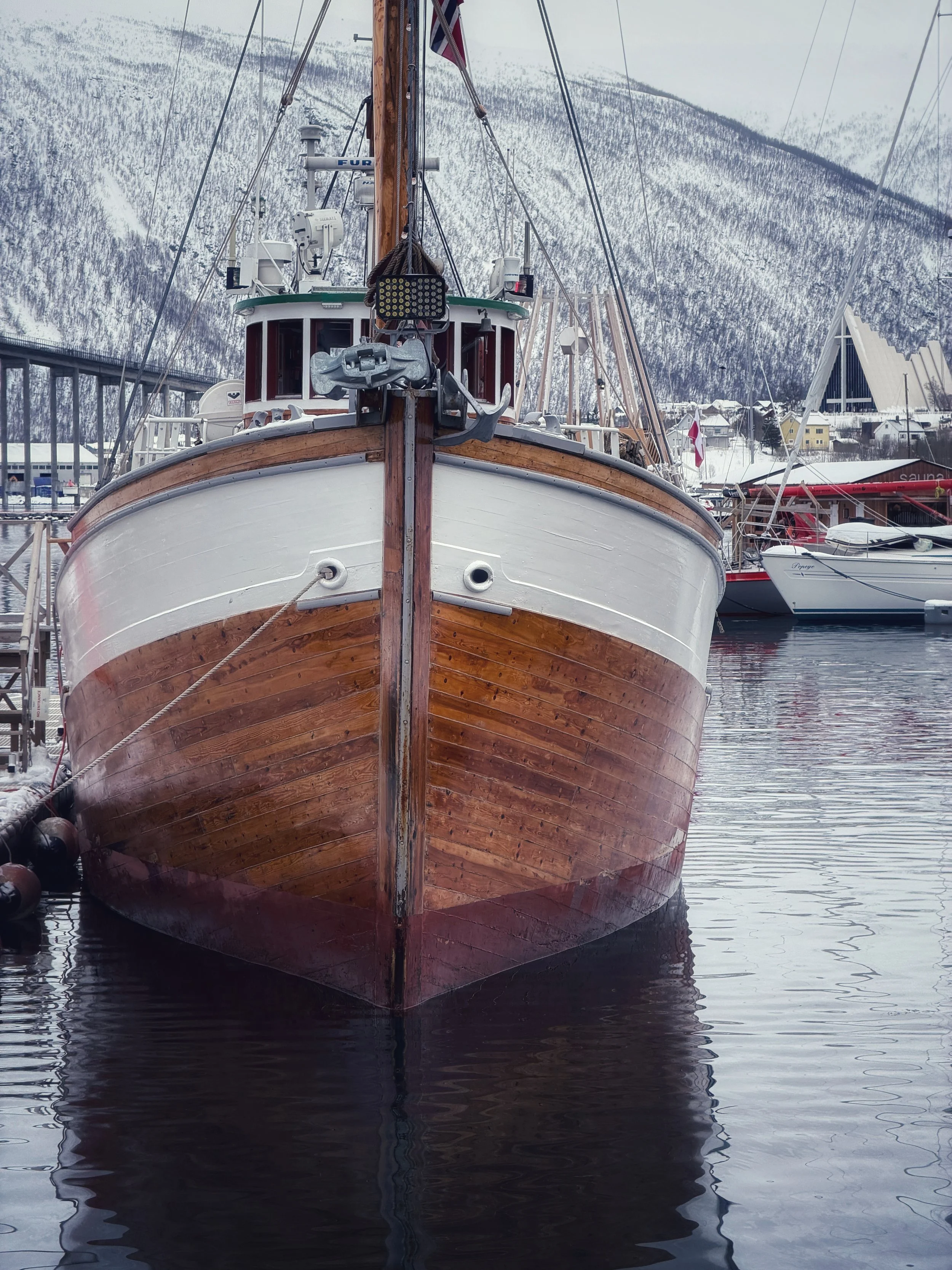 The harbor is silent. Only the slow movement of the fjord breaks the reflections of light.