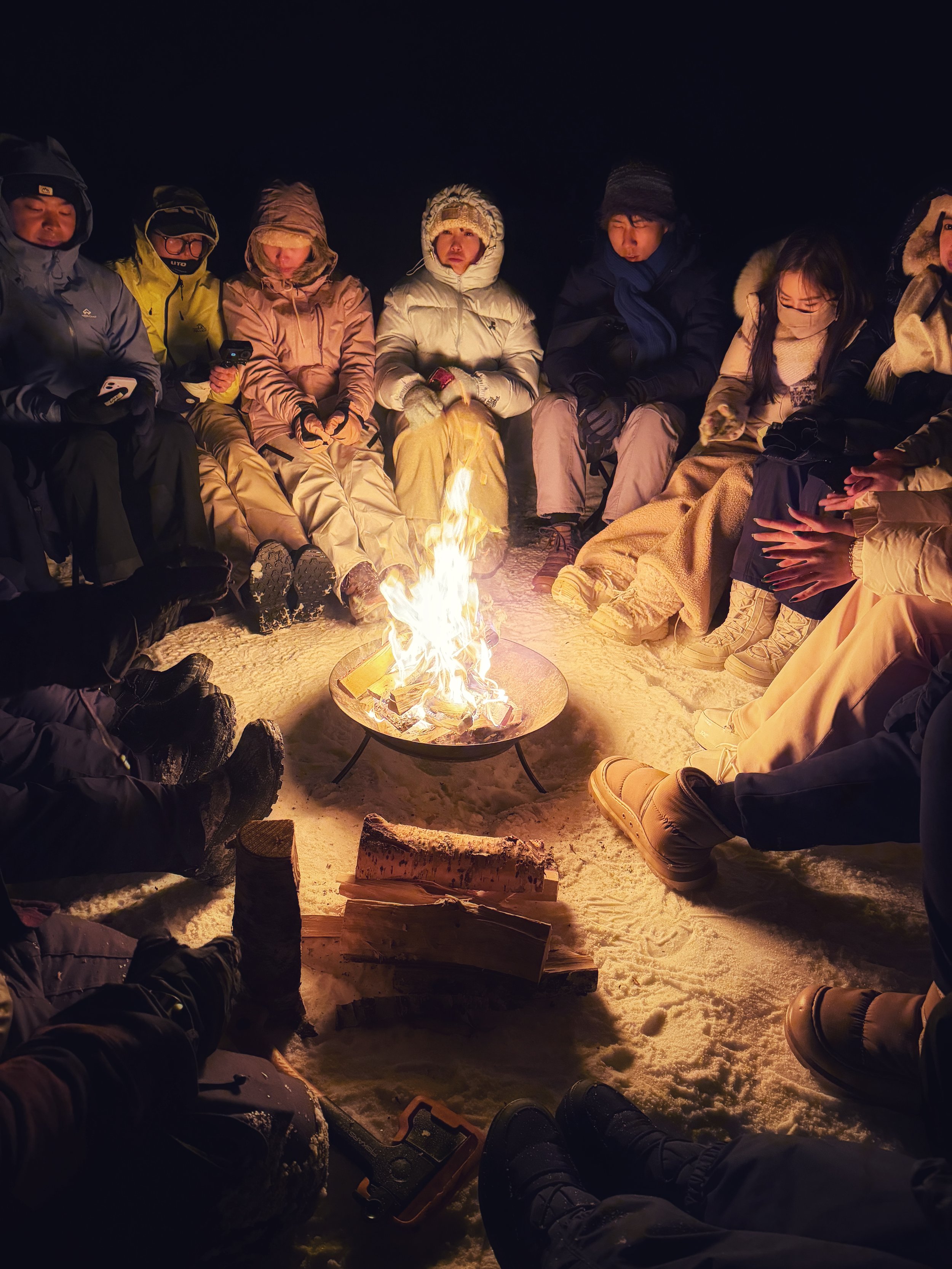 Soon the light fades again into the dark, leaving only stars above the quiet snow and the soft crackle of the fire.